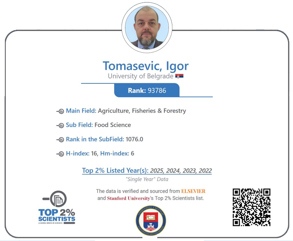 I am a Full Professor of Food Science and Technology at Faculty of Agriculture / University of Belgrade (Serbia), Guest Professor at University of Life Sciences in Lublin (Poland), University of East Sarajevo (Bosnia and Herzegovina) and Universita degli studi di Bari – Aldo Moro (Italy).